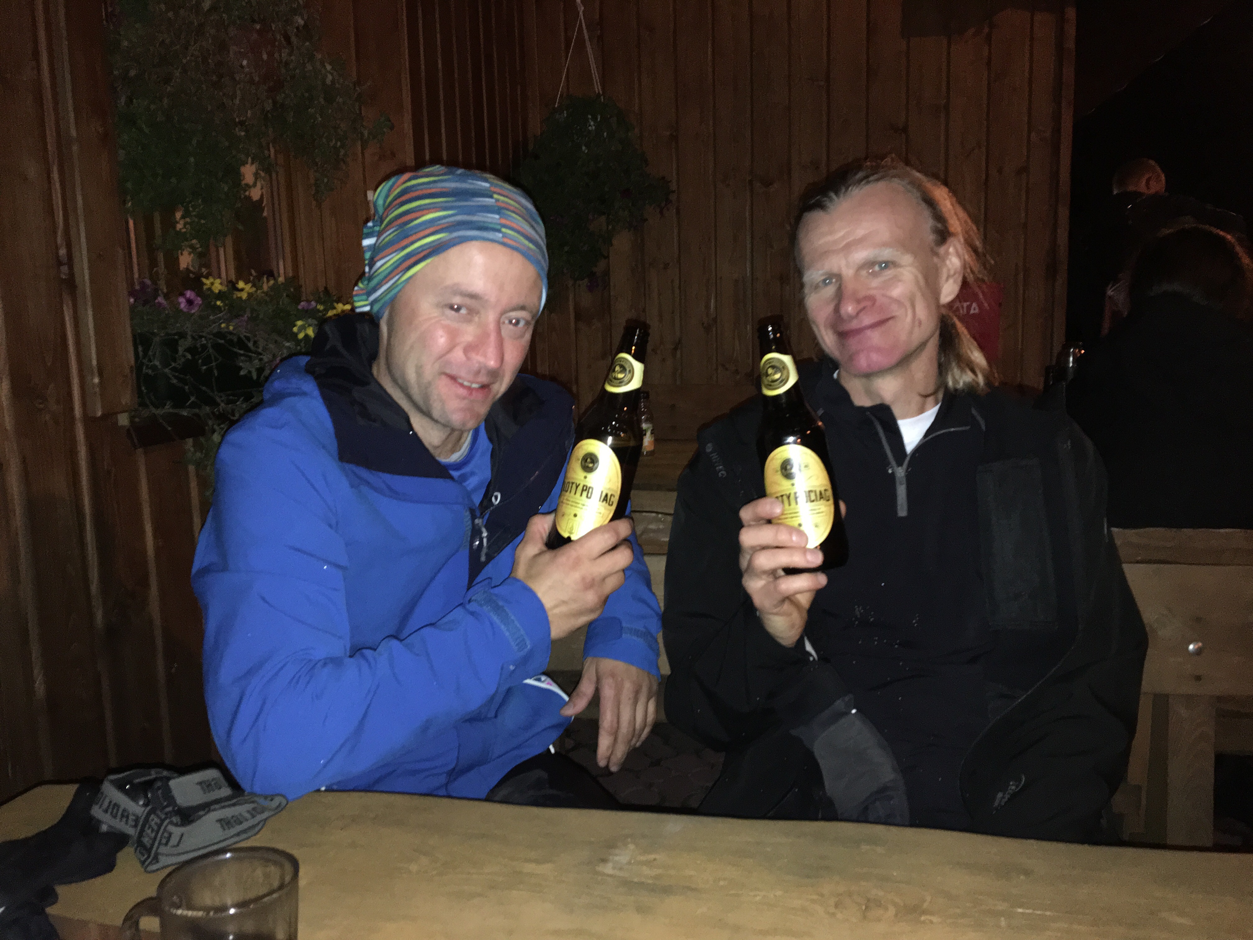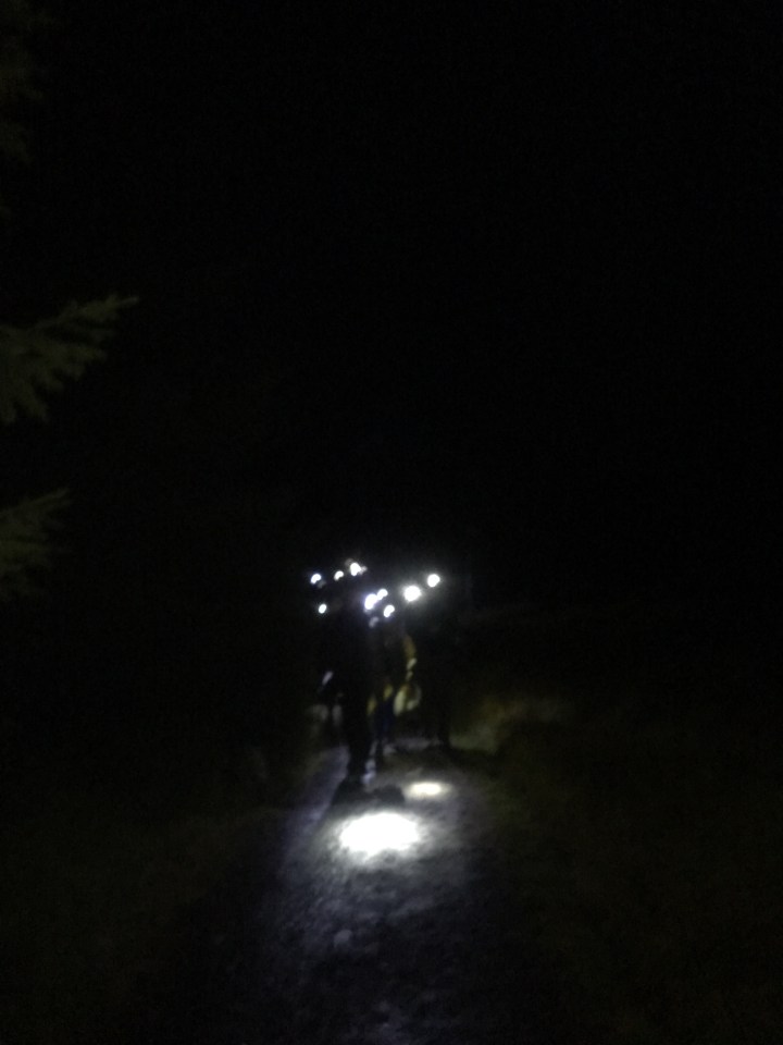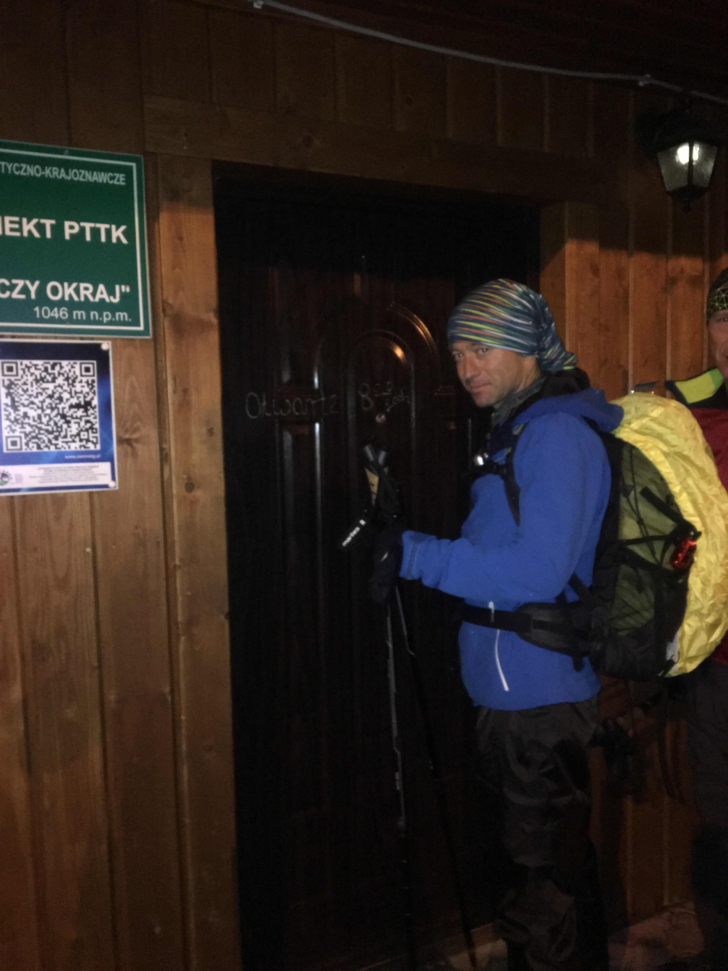 Dotarliśmy do drugiego punktu kontrolnego, 34km. Skończyliśmy etap karkonoski. Po zachodzie słońca idzie się całkiem przyjemnie, jest ciepło, nie pada, wszyscy pomagają w nawigacji i wspierają siebie nawzajem. Generalnie ludzie tutaj chętnie wymieniają się doświadczeniami przy długich marszach, ten krem na to, amol najlepszy do smarowania ud itd. Nikt nie widzi problemu żeby przebierać kalesony przy stole w schronisku, w trakcie gdy inni jedzą. Grzesiu w takich warunkach czuje się jak ryba w wodzie:) Integracja postępuje, a tu jeszcze 100km!