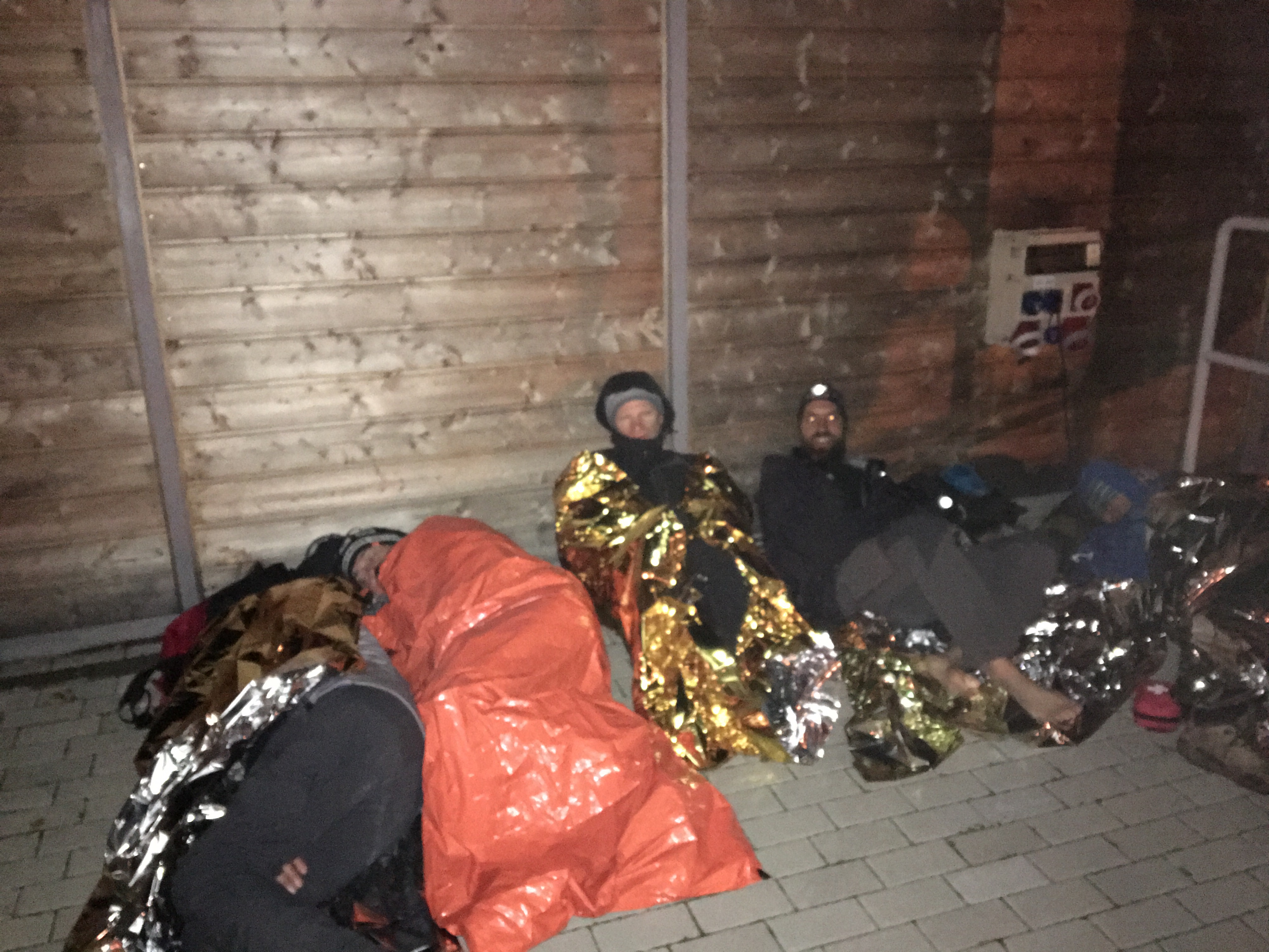 Dotarlismy do punktu żywieniowego na 56km – 3.00 to idealna pora na makaron w sosie pomidorowym, wyjątkowo zgodziłem się też na słodzoną herbatę (innej nie ma). Przyda nam się odpoczynek, chyba kazdego oprócz Tadzia coś boli, ja mam pęcherz na palcu – Grzesiu się śmieje, że to od pisania bloga:) Reszta narzeka na kolana i kręgosłup. Grzesiu chyba zostanie tutaj dłużej, my po krótkiej drzemce planujemy ruszyć dalej. Park w Janowicach wygląda jak szpital polowy, dotarło tu na chwilę obecną ze 200osob, ale sporo z nich kończy tutaj przygodę z przejściem. Okazuje się, że są osobne plastry na pęcherze i odciski. Niezły chwyt marketingowy, chyba lepszy od złotego pociągu 😉 Ja dałem się chwycić podwójnie 🙂
