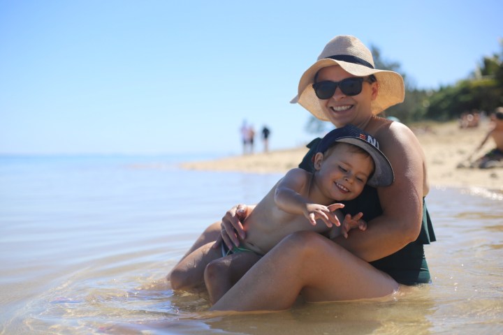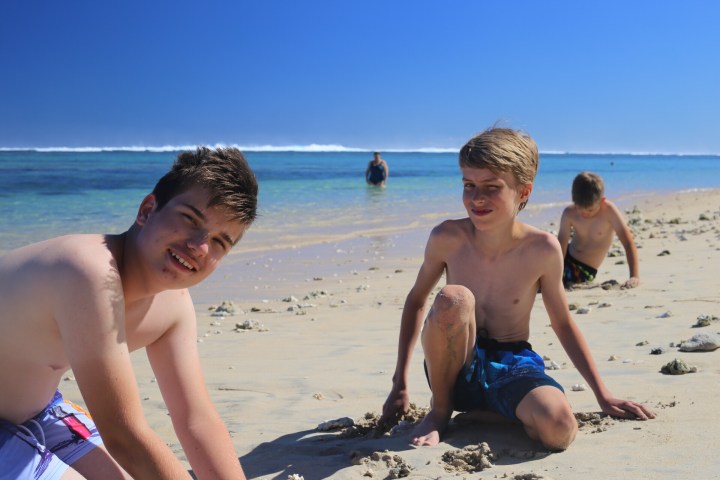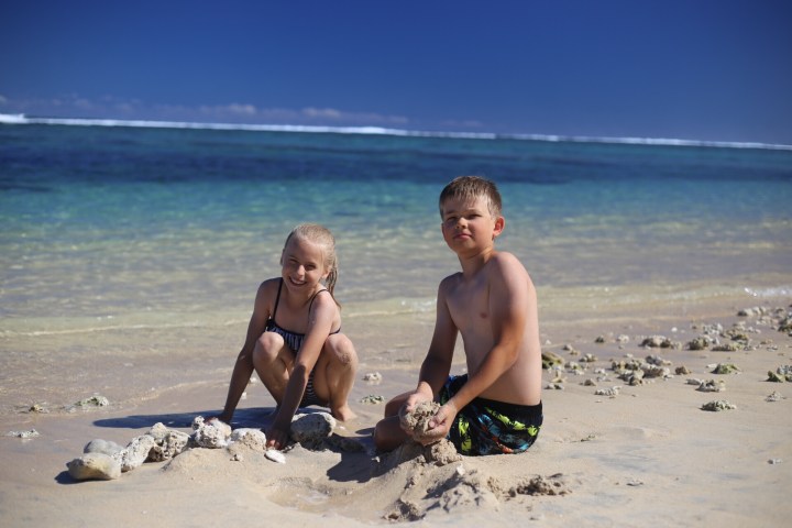 Żałowałem, że nie wziąłem maski, wchodząc po pas można już było zauważyć sporo kolorowych rybek, czułem się jak w akwarium. Widzieliśmy też kilka kajaków pływających po lagunie, fajnie by było podpłynąć pod fale sięgające tu momentami kilku metrów. Zastanawiał nas brak surferów, chyba rekiny musiały zrobić swoje…