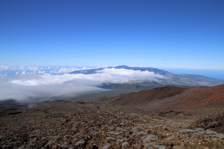 Pozostało zejście – wcale nie łatwiejsze. Trzeba było uważać, mokre ruchome kamienie nie wybaczały błędu. Dobrze, że miałem kije. Podczas zejścia niebo zrobiło się całkowicie niebieskie, można było wzrokiem ogarnąć cała wyspę. Niesamowity widok!