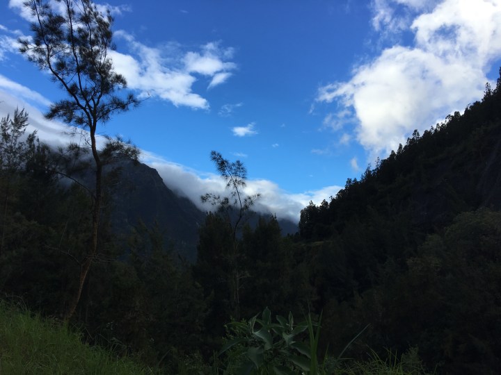 Zdecydowałem się! Nie mogłem pozostawić najwyższego wzniesienia Oceanu Indyjskiego bez próby zdobycia. Wyznaczyłem sobie za cel samotną wspinaczkę na Piton des Neiges 3071m. n. p. m. Przewodnik sugerował rozłożyć wejście na dwa dni, tylko osobom z dobrą kondycją sugerowano wejście i zejście tego samego dnia w 10godzin. Nie pozostawiało to marginesu skoro dojazd autobusami do Cilaos zajmuje ok. 2,5h i do tego autobusy jeżdżą 5-19. Z domu wyszedłem o 5.15. W Cilaos byłem chwilkę przed 8.00. Ostatni autobus miałem o 18:05, trzeba było się sprężać…