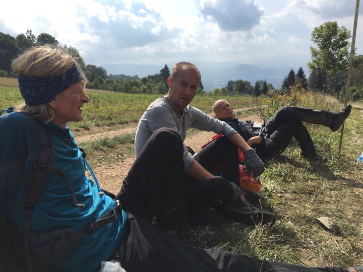Mamy za sobą checkpointy 4 i 5. Zegarek pokazuje 70km, wg mapy jest 66km. Zmieniono, znaczy wydłużono trasę, właściciel stadniny nie życzył sobie aby uczestnicy szli przez jego włości. Dziwne, uczestników na tym etapie coraz mniej, przybędzie świeżej krwi na półmetku. Ciekawa sytuacja na piątym checkpoincie, mój numer był juz odnotowany, poproszę żeby sprawdzili kolejne, może już jestem na mecie 😉