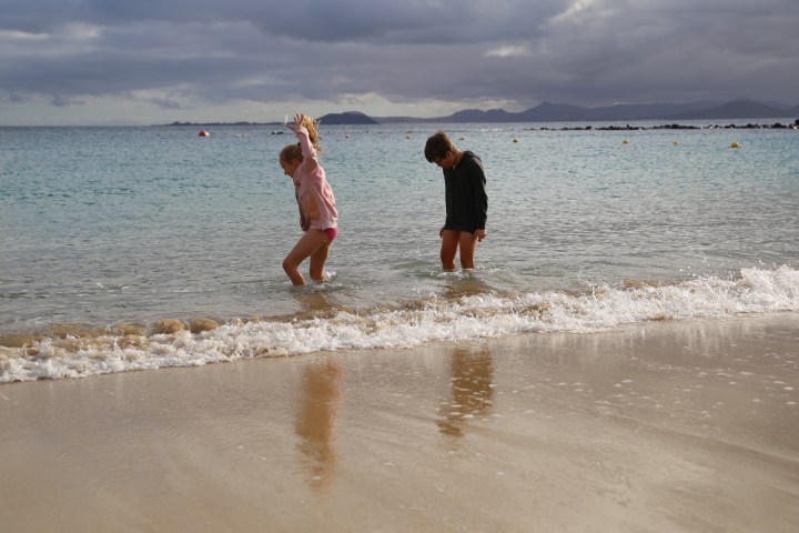 Chwilę później udało nam się w końcu znaleźć miejsce w autobusie, dojechaliśmy do Playa Blanca tuż po zamknięciu targu😢 Hania odbiła sobie to zakupami w sklepie z pamiątkami. Skorzystaliśmy też z okazji i odwiedziliśmy miejscowe plaże. Szkoda, że nie przekonałem ekipy na rejs promem na Fuerteventurę. Wyspa słynie z rewelacyjnych plaż. Nic straconego, te z Lanzarote też dają frajdę😀