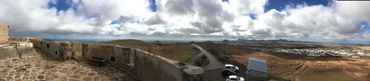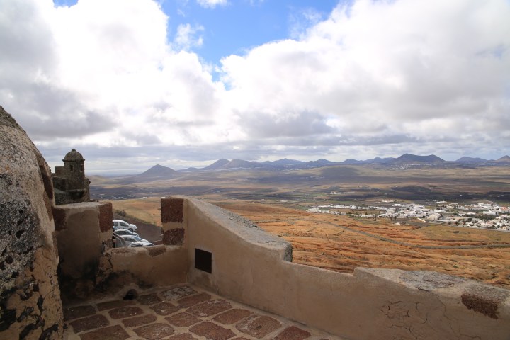 Wyruszyliśmy w komplecie o 11.30, tym razem autobus zabrał nas za pierwszym razem, jechaliśmy do starej stolicy Teguise, z przesiadką w aktualnej Arrecife. Do celu dojechaliśmy Ok. 14.00. Naszym oczom ukazał się zamek: