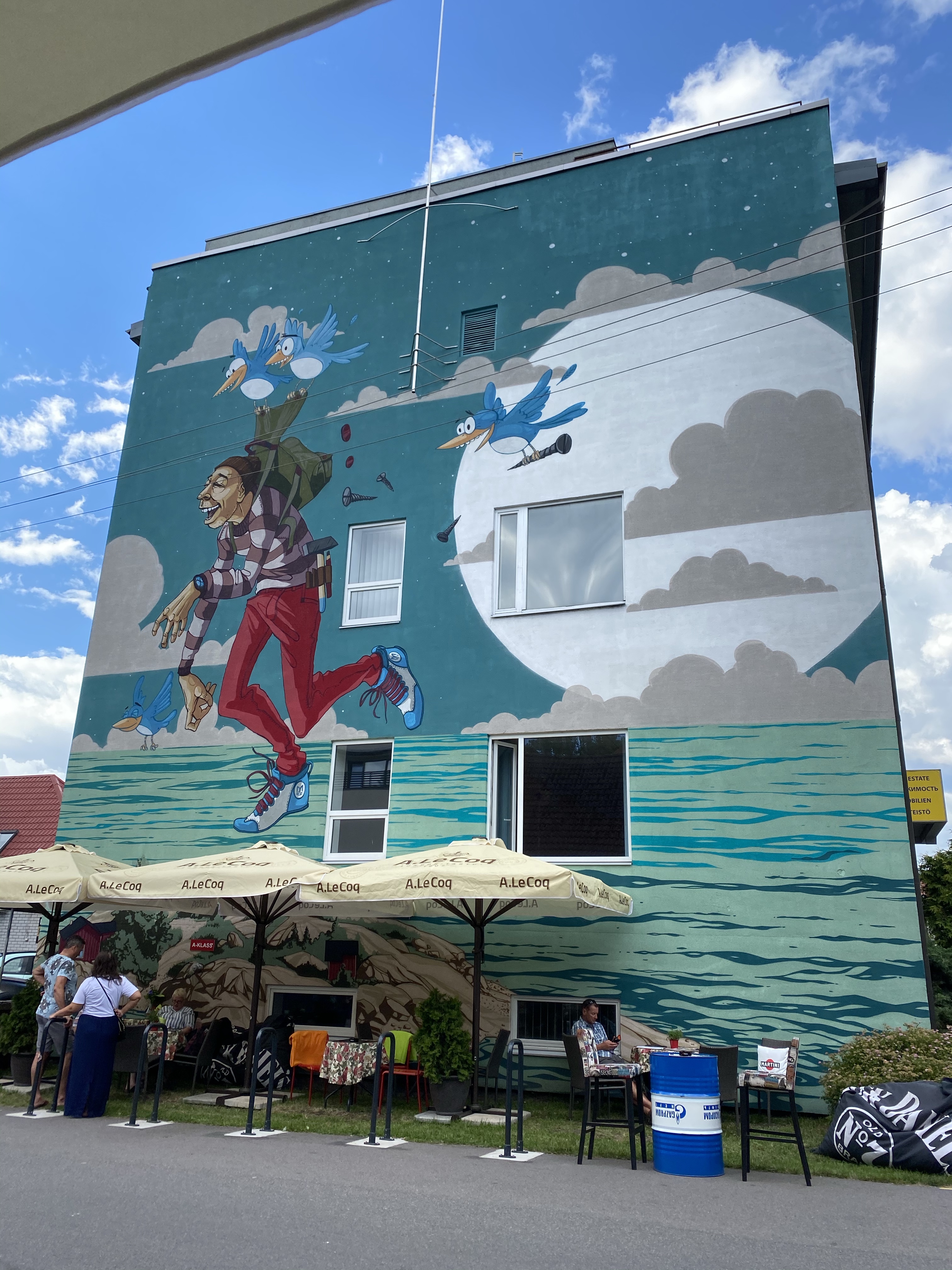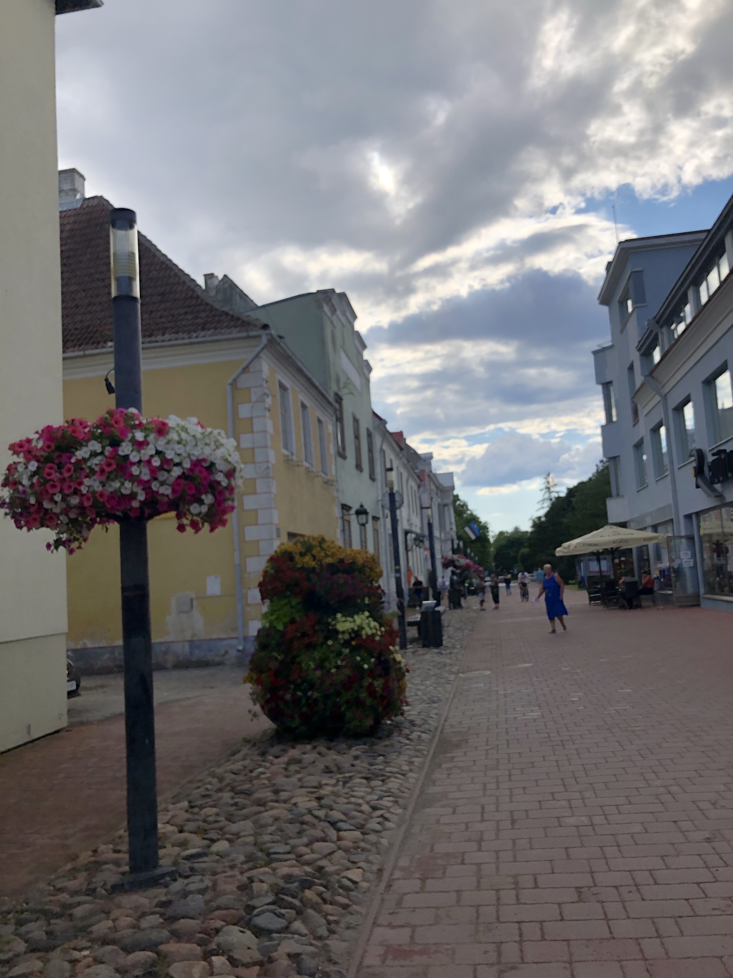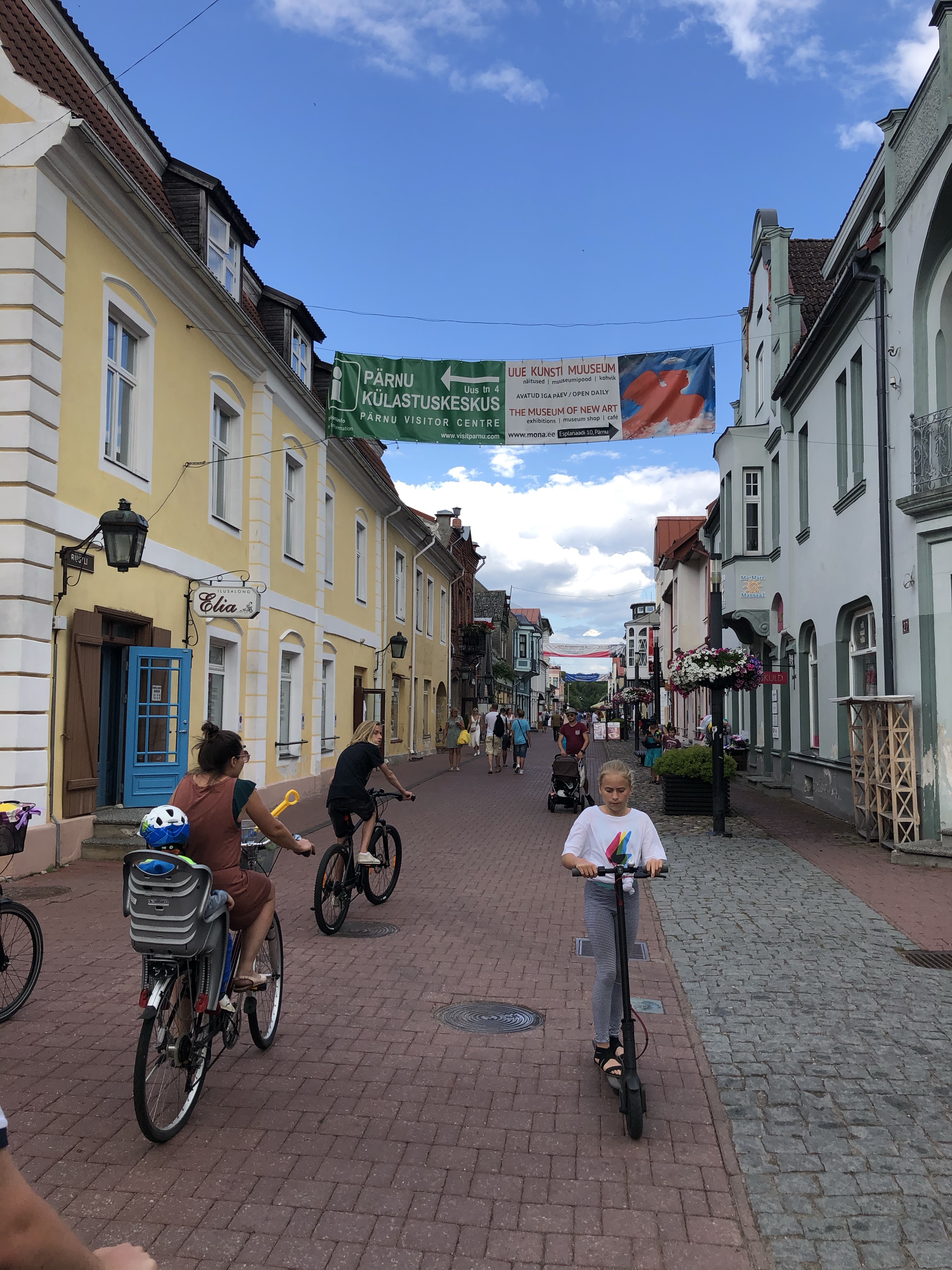 Na piątek zaproponowałem zmianę plaży i zwiedzanie Parnawy. Odległość z kempingu do centrum to 12km, w sam raz na wycieczkę rowerową👍 Jechało się przyjemnie, w zasadzie cały czas dedykowaną dla rowerów ścieżką. Trzeba pochwalić kulturę lokalnych kierowców, gdy tylko zbliżaliśmy się do pasów, natychmiast byliśmy przepuszczani. To chyba skandynawskie wpływy. Jak daleko są nasi kierowcy, którzy z premedytacją potrafią zajechać rowerzystom drogę – nie do pojęcia.