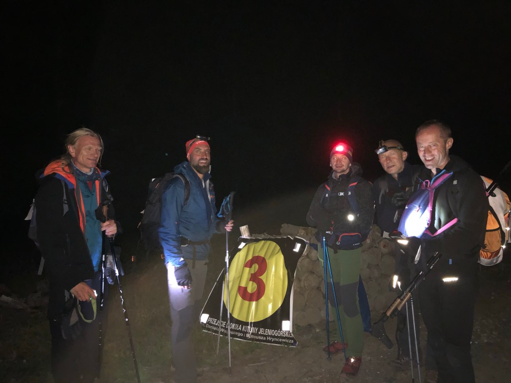 Za nami trudna noc, wydawała się całkiem ciepła, wystarczyła jednak krótka przerwa żeby przekonać się jak naprawdę jest zimno. Rudawy Janowickie mimo niewielkiej wysokości potrafią dać w kość. Niska temperatura i punkt żywieniowy w Janowicach wielkich motywowały nas do podkręcenia tempa. Po drodze zaliczyliśmy trzeci checkpoint