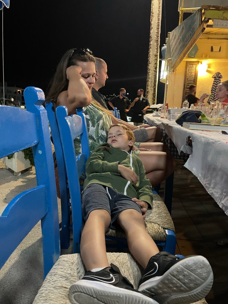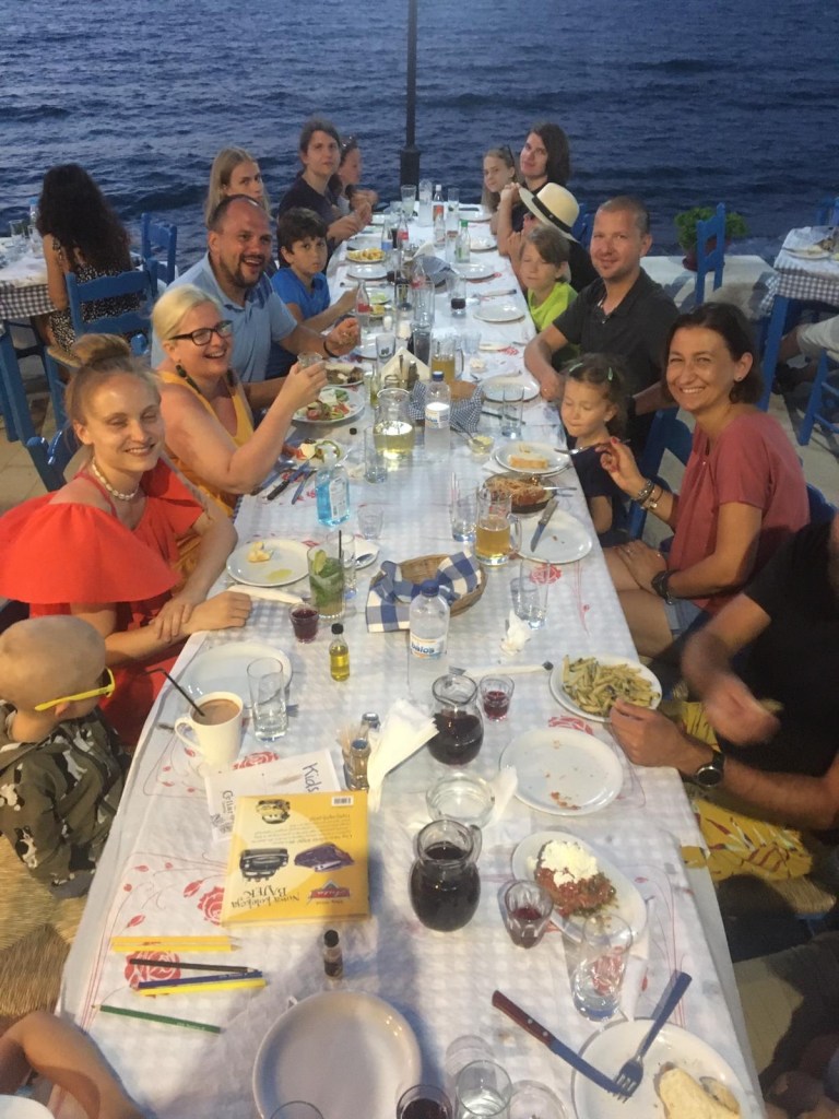 Dziś pogoda dała nam w kość, słabszy wiatr i od razu temperatura odczuwalna poszła w górę. Było trudno przejść boso po piasku. Po 4h rozpoczęliśmy odwrót, tym razem chętnych było więcej, był to ostatni autobus do Kissamos, na szczęście KTel podstawił dwa autobusy. Chcieliśmy sprawnie wrócić aby przywitać z zimnym piwkiem kolejną rodzinę. Dołączyli do nas Magda, Marek, Franek, Heniu, Edek i Janina😁 Robi się całkiem spora gromadka, menedżer apartamentów pyta z niepokojem czy spodziewamy się kolejnych znajomych😂