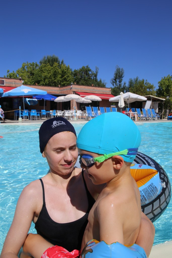 Dzieci korzystały z basenu, choć za pierwszym razem przegoniono ich za brak czepków, 2,5euro rozwiązało problem. Rodzice dumni, że sprawę dzieci załatwiły samodzielnie👍