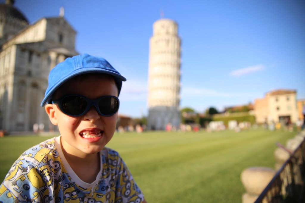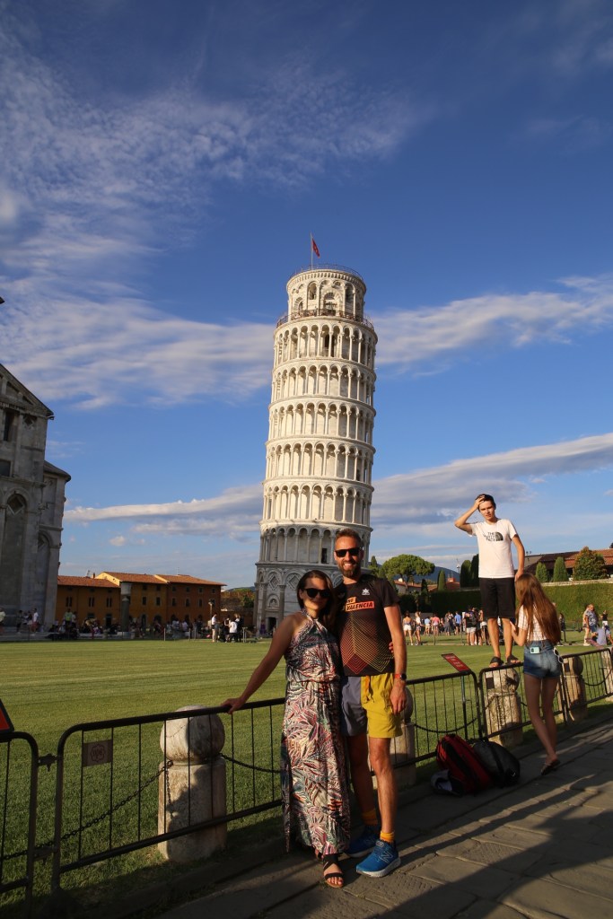 Kolację zaplanowaliśmy w restauracji Tora Tora. Pięknie położonej w centrum Pizy. Antoś czekając na jedzenie mógł ujeżdżać rowerem pomiędzy stolikami😁