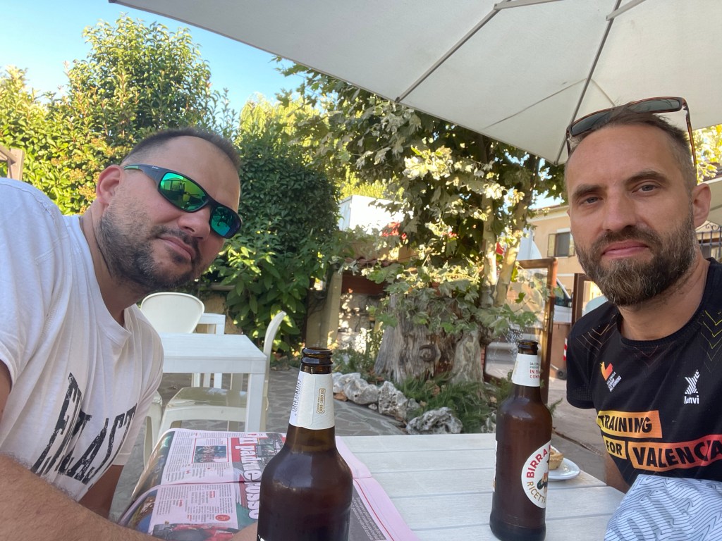 Na śniadanie dołączyli do nas Ula z Piotrem z Latiny, przywieźli spory zapas lokalnego, schłodzonego wina👍 Przyjęłyśmy ich ciepło😁