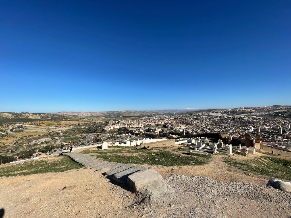 Następnie stanęliśmy przed trudnym zadaniem wydostania się z mediny przy zamkniętych bramach. Jak to tutaj bywa, znalazło się od razu wielu przewodników gotowych nam pomoc, wiemy jednak że taka pomoc bezinteresowna nie jest😂 okazało się, że łatwiej zgubić takiego przewodnika niż zrezygnować z usługi😂 Na szczęście daliśmy radę, trafiając na cmentarz, za którym roztaczał się wspaniały widok: