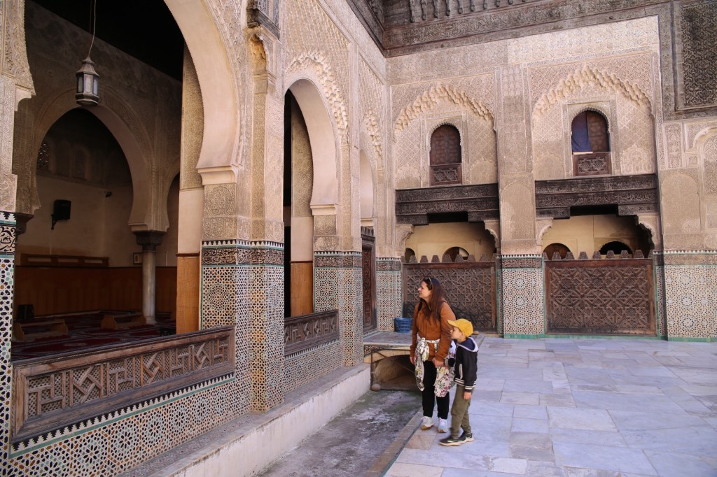 Piątek to dzień modlitwy dla Muzułmanów Dżummuah. Większość obiektów jest wtedy niedostępna, włącznie z mediną. Dziś więc oprócz labiryntu wąskich uliczek natrafialiśmy na zamknięte bramy, labirynt z utrudnieniem😢 Czynna za to okazała się medresa (szkoła koraniczna) Bou Inania wraz z zegarem wodnym z XIVw. niestety niedziałającym, mechanizm nie został do końca poznany, zegar czeka na renowację. Antoś mógłby pomóc, nie miał niestety tego, potrzebnego klocka😂
