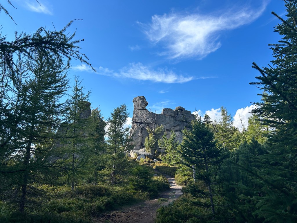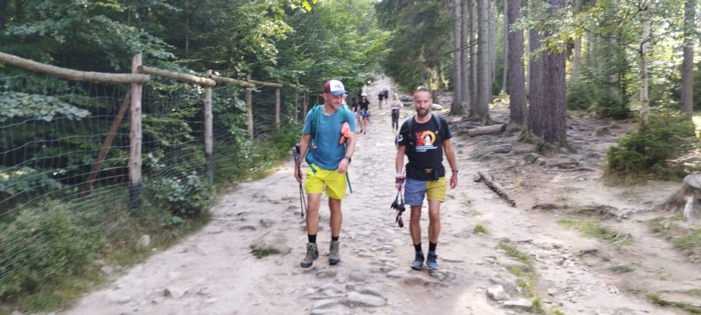 Kilka godzin snu dało nam dużo energii, szybko dotarliśmy do Rozdroża Izerskiego gdzie wiat faktycznie nie było – decyzja o wyborze miejsca była słuszna👍 Miny nam trochę zrzedły gdy sprawdziliśmy ile de facto nam zostało, odległość do Świeradowa wynosiła 10km, a trzeba wrócić, wejść na zwalisko, dalej do Jakuszyc przez Przedział do Szklarskiej. Czy aby na pewno zmieścimy się w limicie? Wychodziło nam, że mamy 1,5h zapas. Niedużo, a mięśnie i stawy nie pracują tak samo jak na początku😢