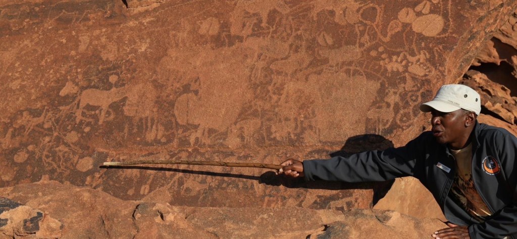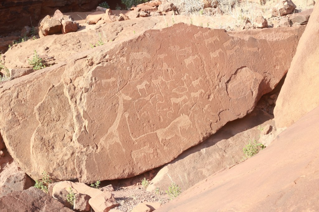 Do celu – Twyfelfontain dotarliśmy o 16:30, na pol godziny przed zamknięciem. To obowiązkowy cel dla wszystkich, można tu zobaczyć wyryte na skałach symbole Buszmenów sprzed 6tys. lat.