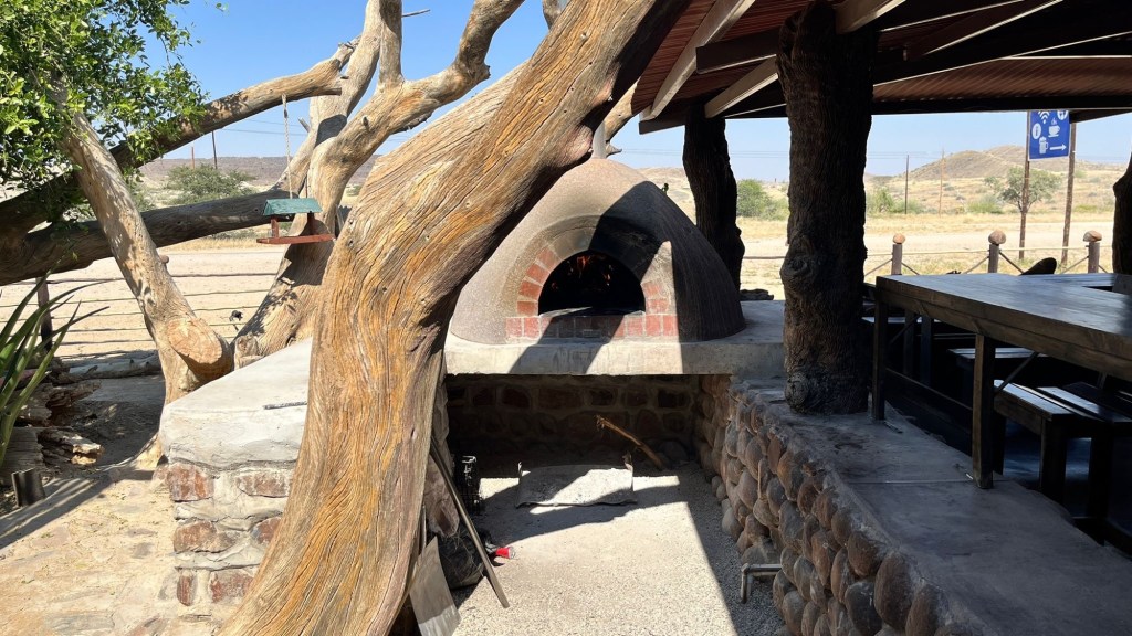 Po 100km zrobiliśmy sobie przerwę w górniczej miejscowości Uis. Restauracja White Lady skusiła nas dobrym jedzeniem i chłodnymi napojami.