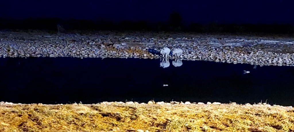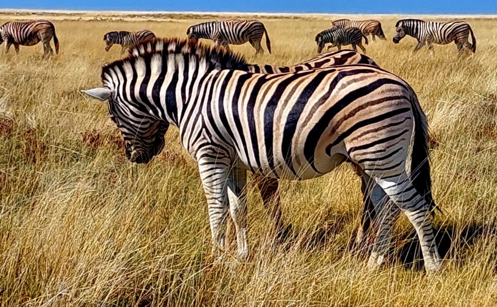 O 10 wyjechaliśmy na Safari. Dzień zdominowały zebry, tu też się okazuje, że są dwa rodzaje. Odmiana Hartmanna niemal wyginęła, przez smaczne mięso, dzięki działaniom Parku Etosha udało się odbudować populację do 2,7 tys. sztuk ze stu. Rozróżnić je można m.in. po braku pasów na brzuchu. Trudno było, musimy zainwestować w lepsze obiektywy😉