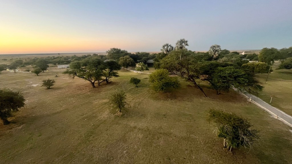 A oto nasz dzisiejszy kamping, Namutoni. Jest uroczy i kameralny. Jest tutaj podświetlany wodopój i fort. Sprawdzimy jak się prezentuje o wschodzie Słońca, bo podczas zachodu tak: