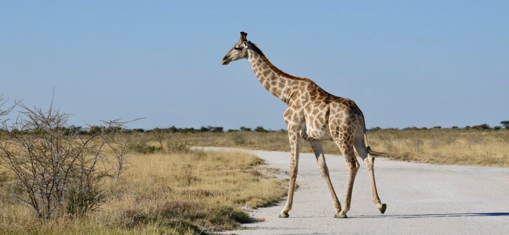 Dużo nie brakowało nam do zderzenia się z żyrafą. Na szczęście łatwo ją zauważyć, wbiegła nam pod maskę. Widok zgrabnie i lekko biegnącej, ważącej blisko 800kg żyrafy, bezcenny.