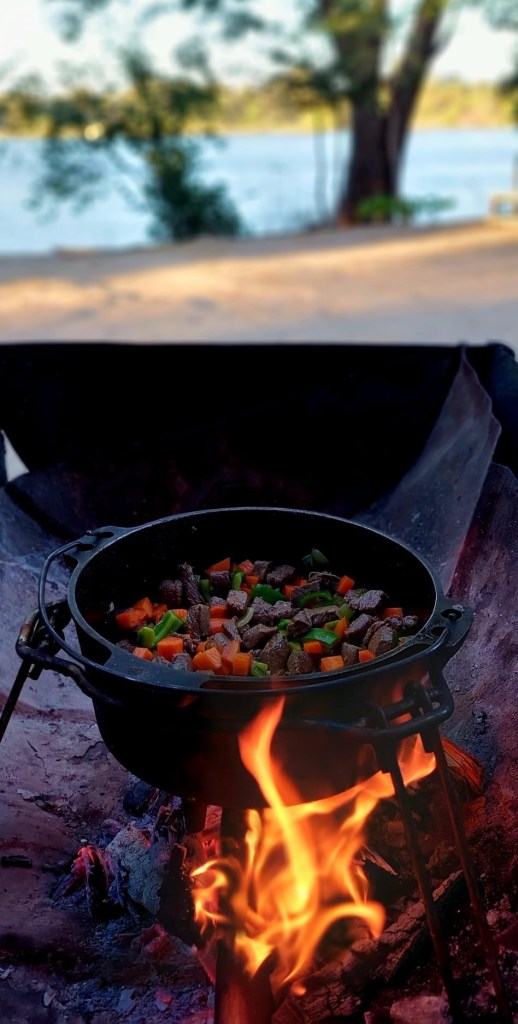 Śpimy na kempingu przy rzece, jesteśmy praktycznie sami. Kociołek ładnie skwierczy, obym nie przesadził z chilii…